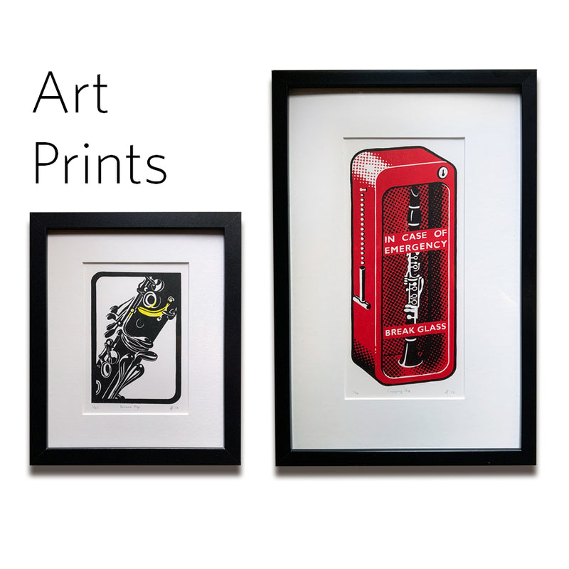 Add some spark to your practice room or teaching studio with unique clarinet artwork. Each piece is produced entirely by hand by artist Cameron Hewes.