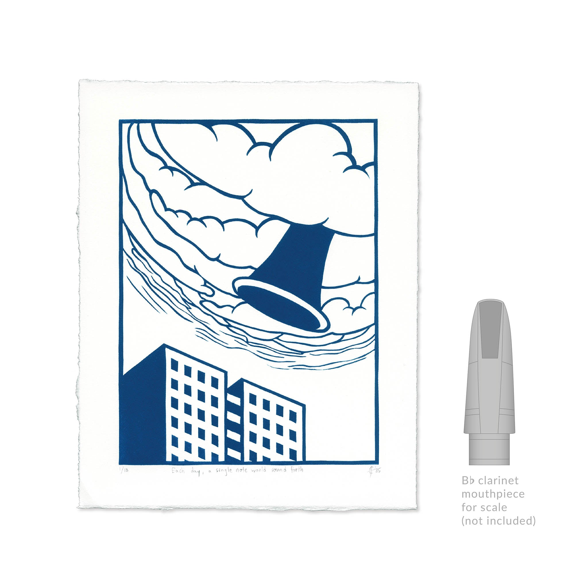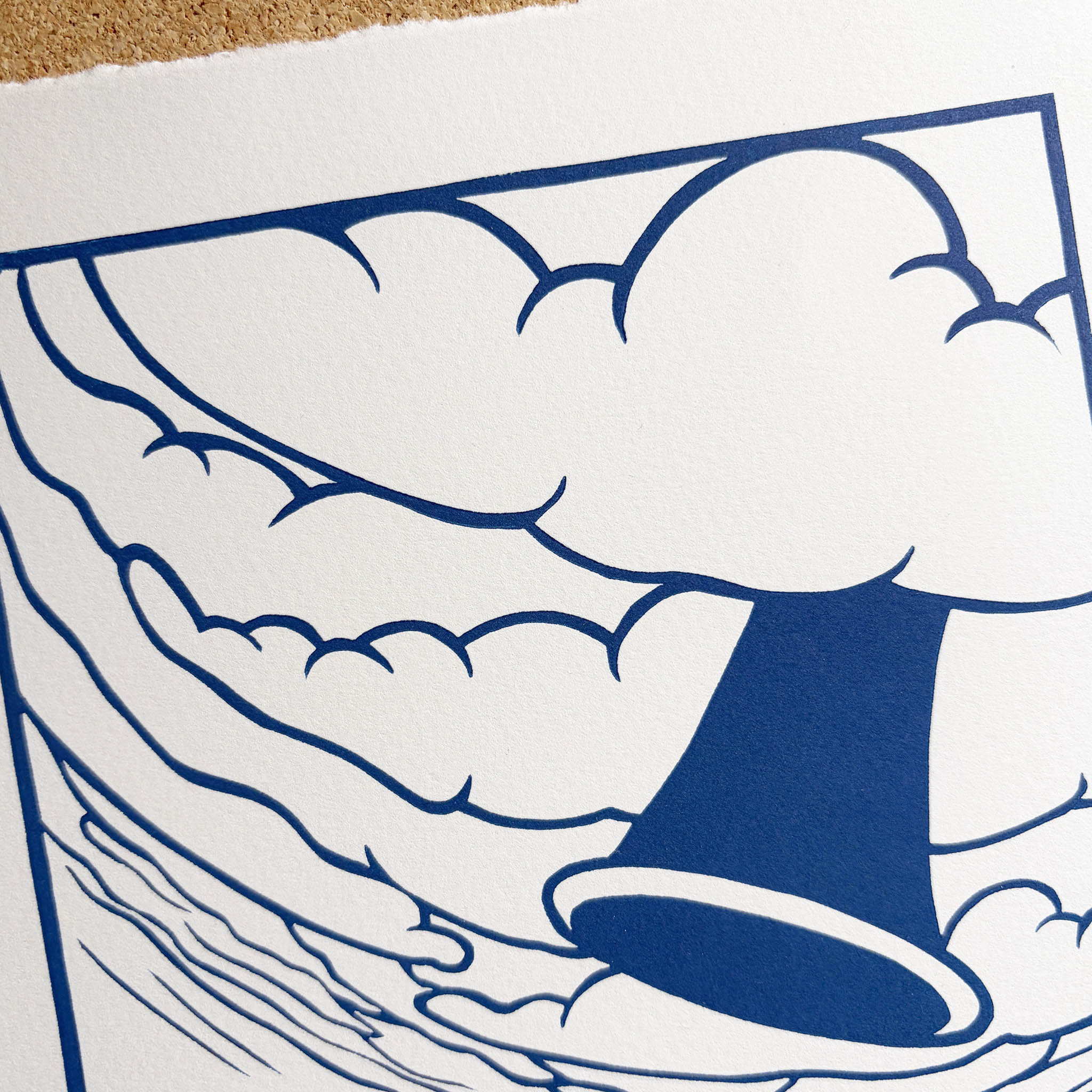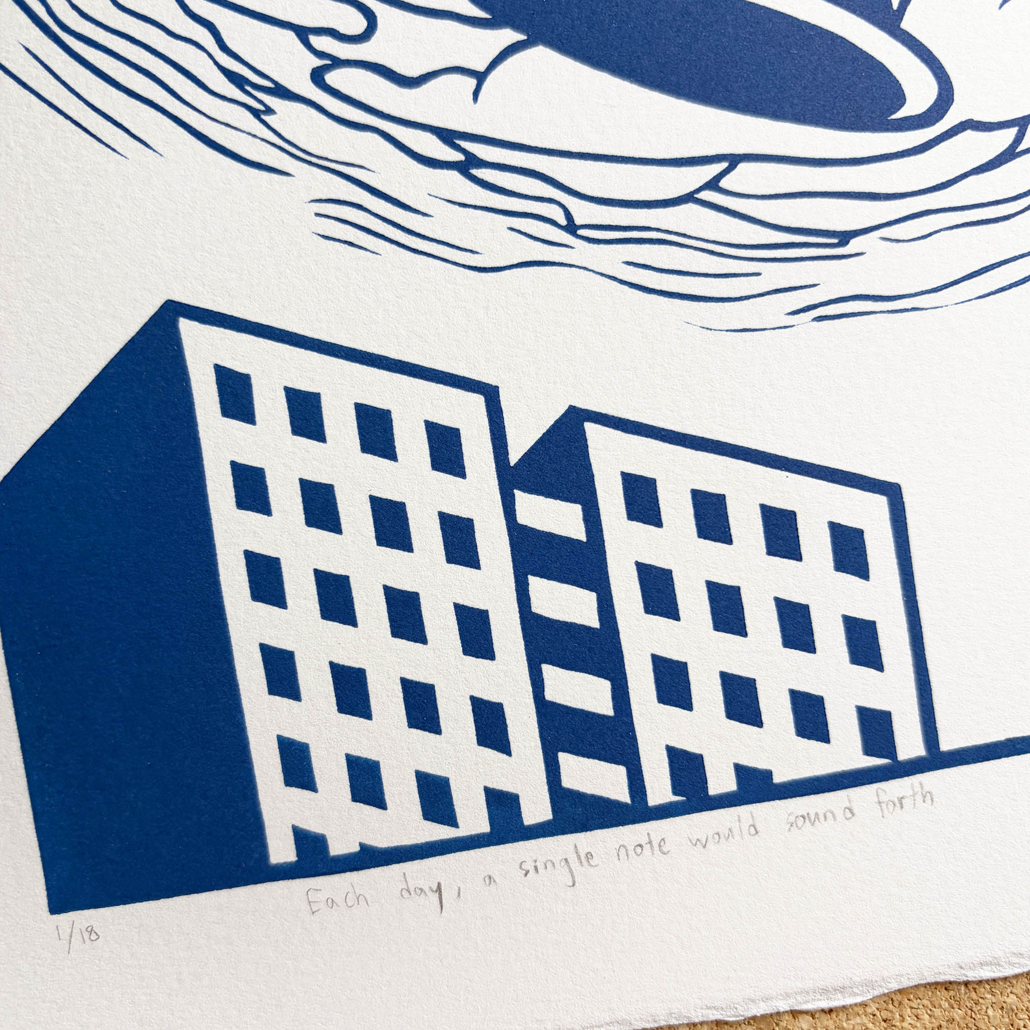 Printed with blue oil-based ink on 100% cotton Legion Somerset Satin paper with a hand-torn or deckled (feathered) edge.