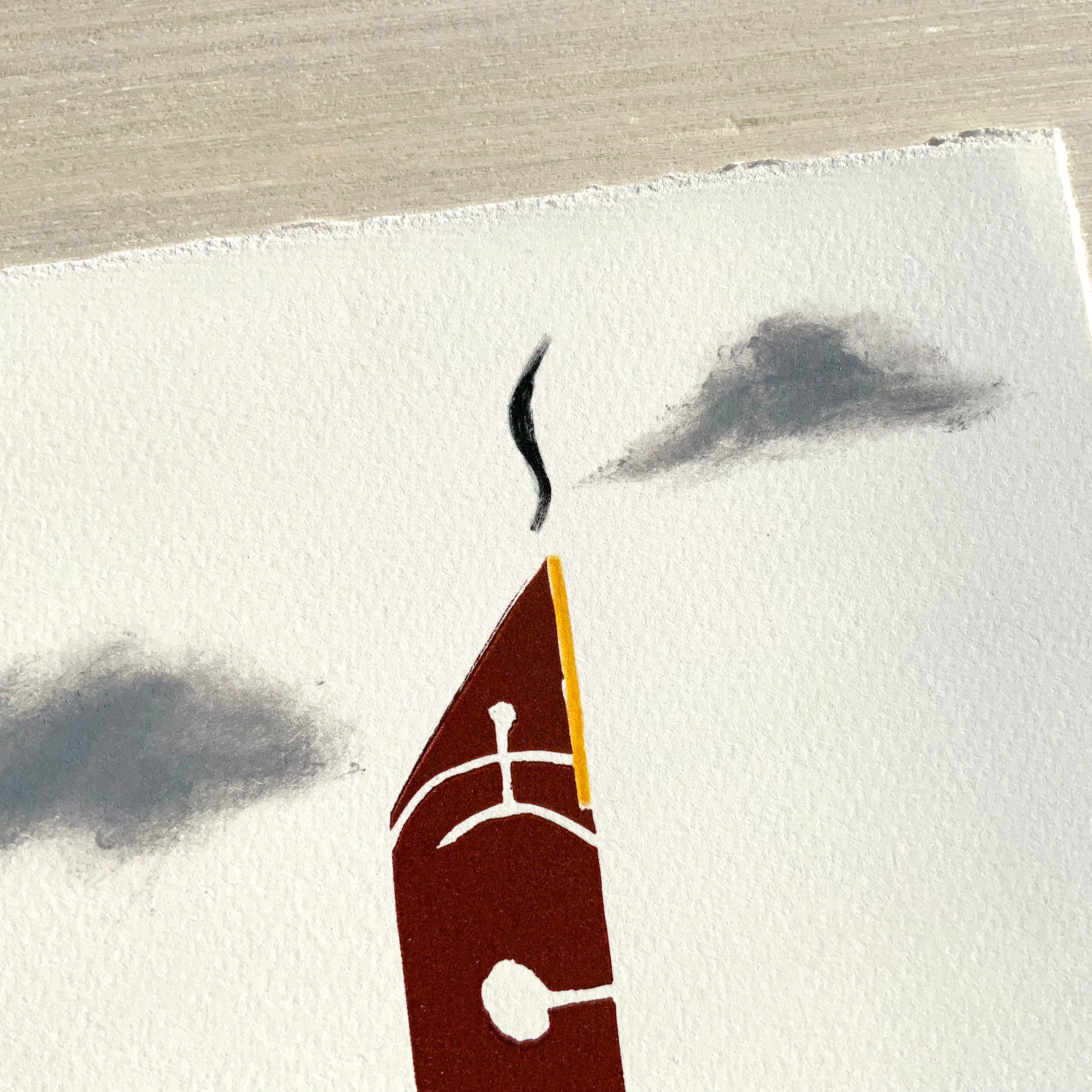 This artwork is made by Elliot Keeler, hand-printed from two hand-carved blocks, signed and numbered from a limited edition of 35. Each print comes with a certificate of authenticity.