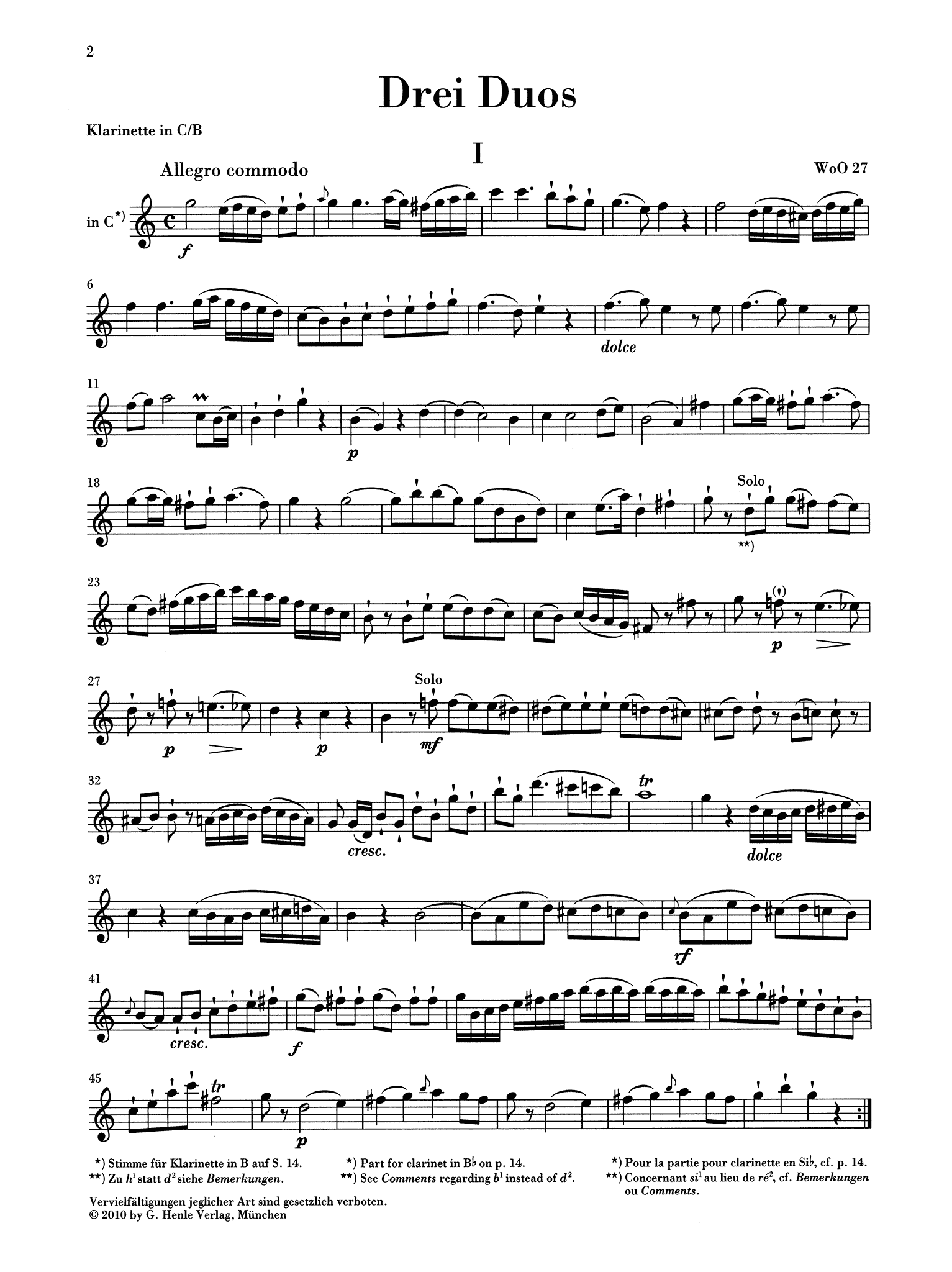 Duo No. 3 in B-flat Major, WoO 27Also included is an alternative C clarinet part for Duo Nos. 1 and 2.