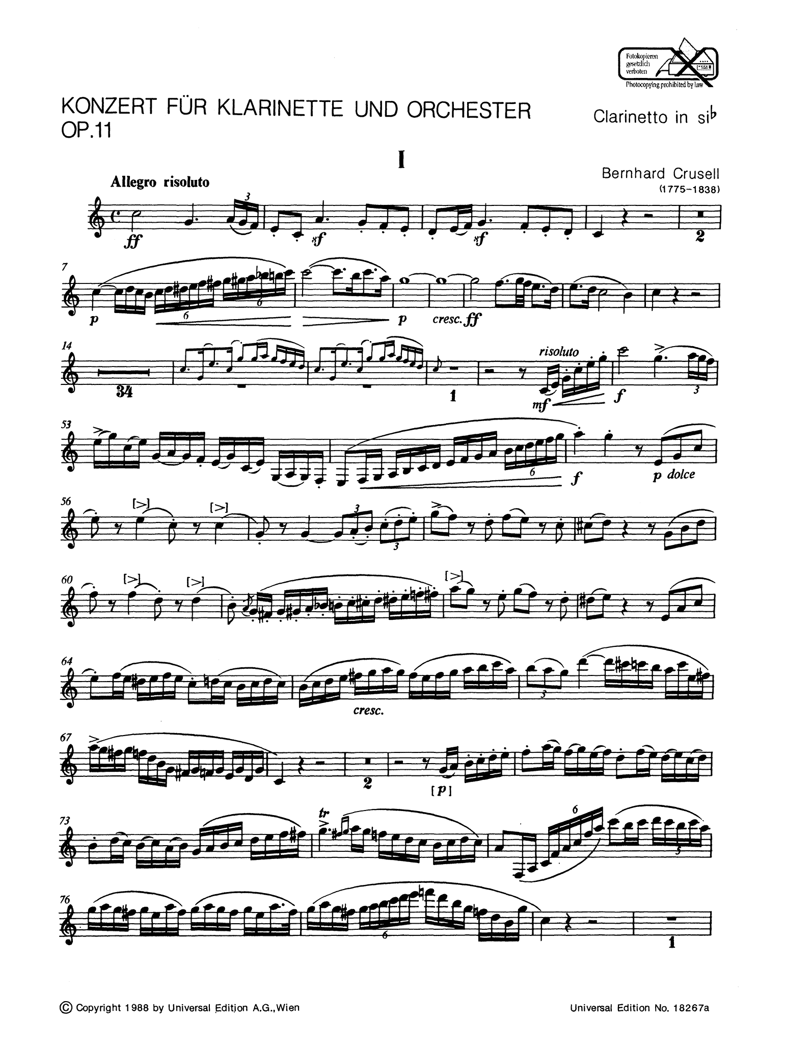 Clarinet Concerto No. 3 in B-Flat Major, Op. 11; edited by Pamela Weston