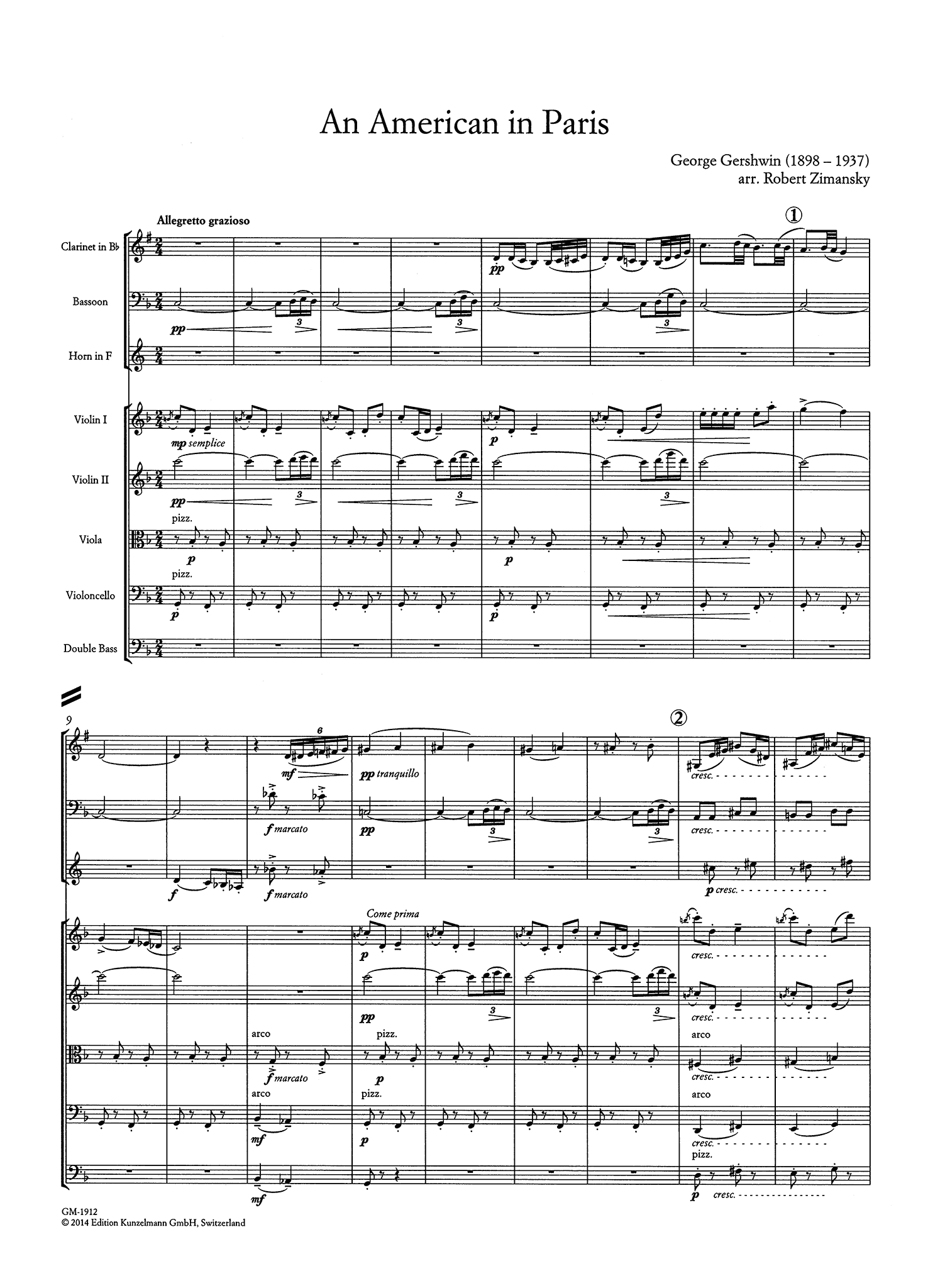 We have found that this version for string quartet, double bass, clarinet, bassoon and horn preserves much of the orchestra character of the original work. At the same time it can provide an entertaining close to an evening of chamber music by more classical composers.The circled rehearsal numbers, as well as the measure numbers, correspond to those of the original orchestral score. Because of the cuts there are sometimes gaps in the numbering, but this facilitates reference to the original score. Some dynamics have been changed to help balance the piece as a chamber music work."