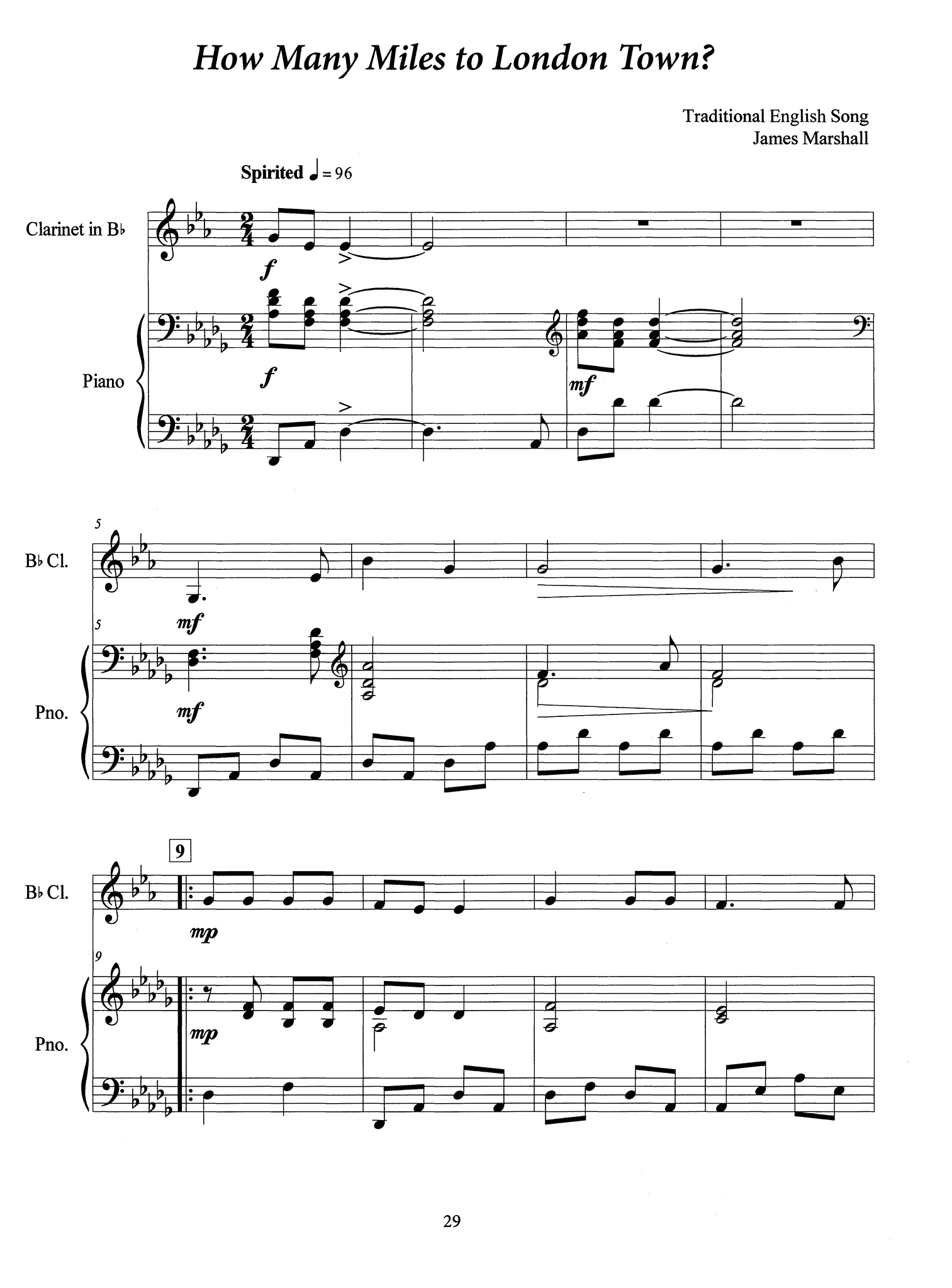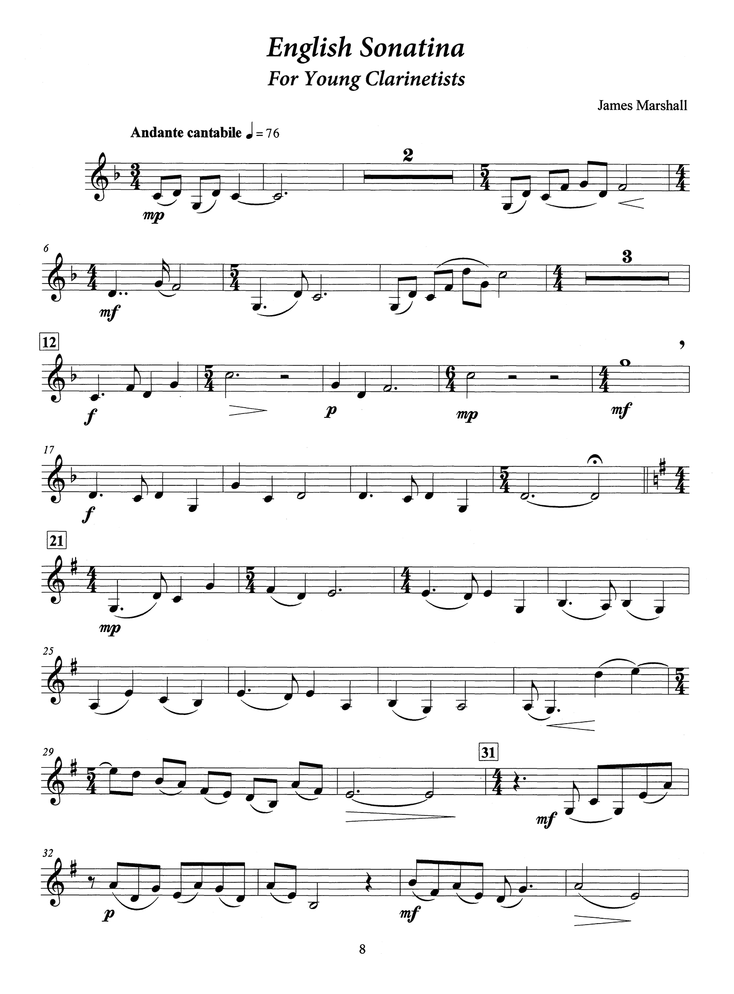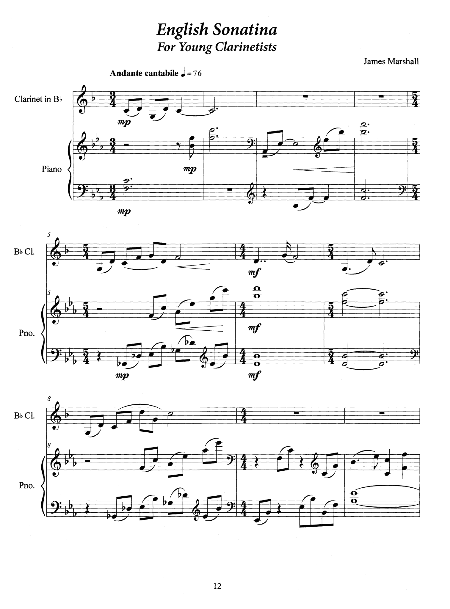 This edition consists of a collection of 12 works for clarinet and piano, composed/arranged by James Marshall.