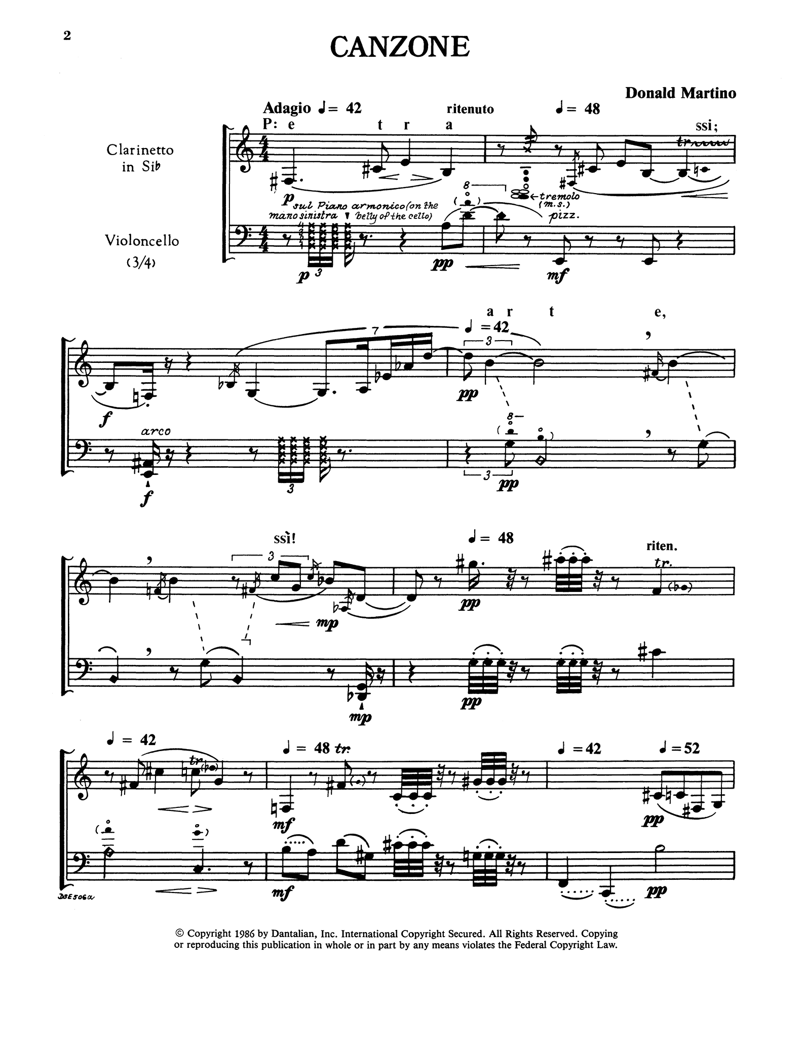 This edition consists of two duet parts (the cello part contains the clarinet line in concert pitch).