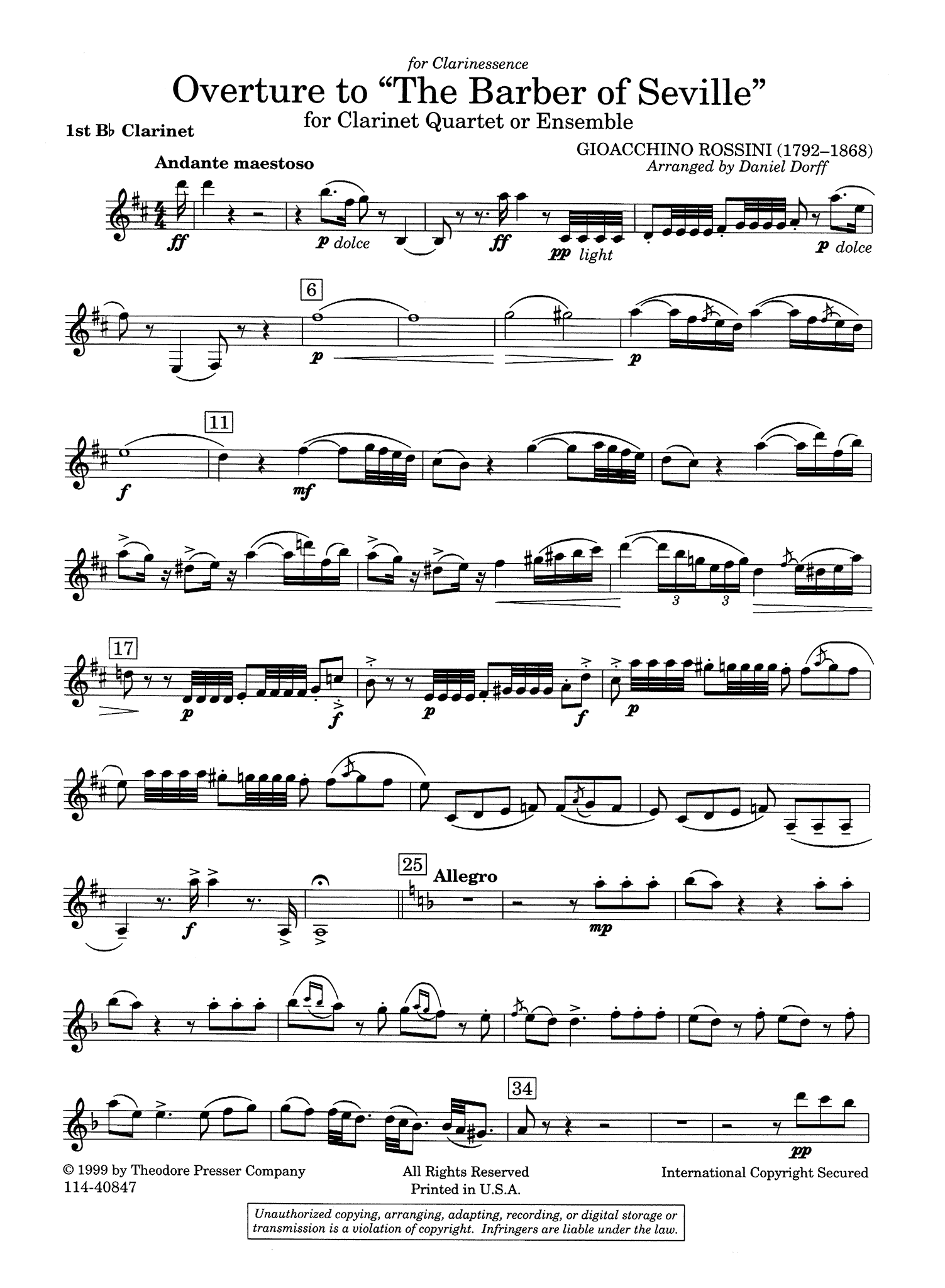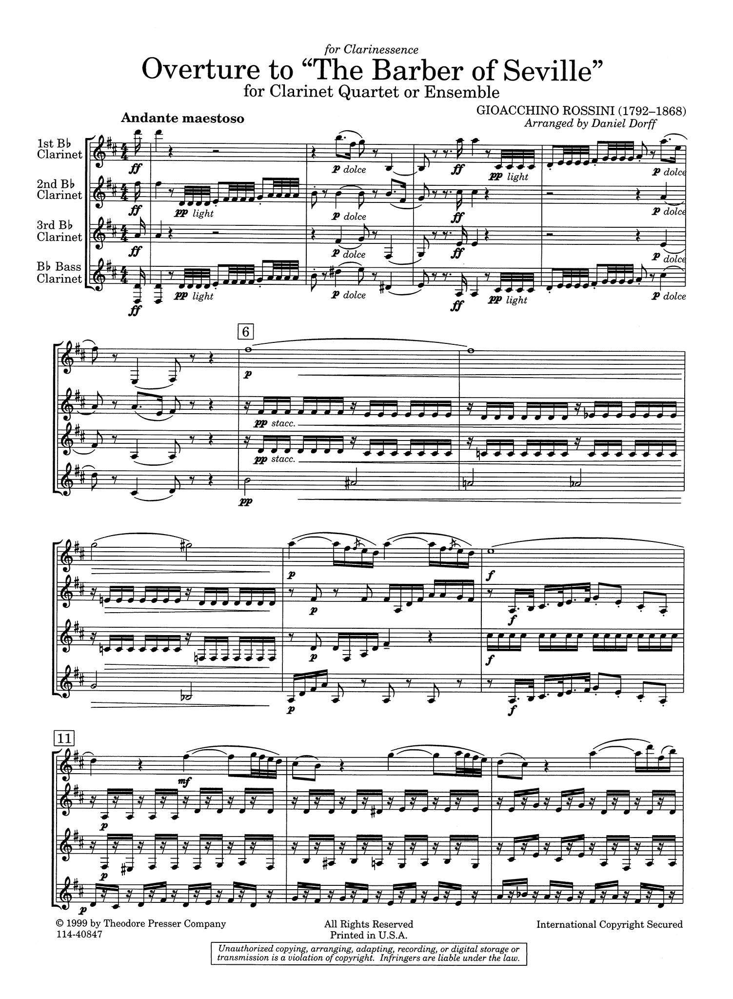 Overture from 'The Barber of Seville', arranged for clarinet quartet by Daniel Dorff