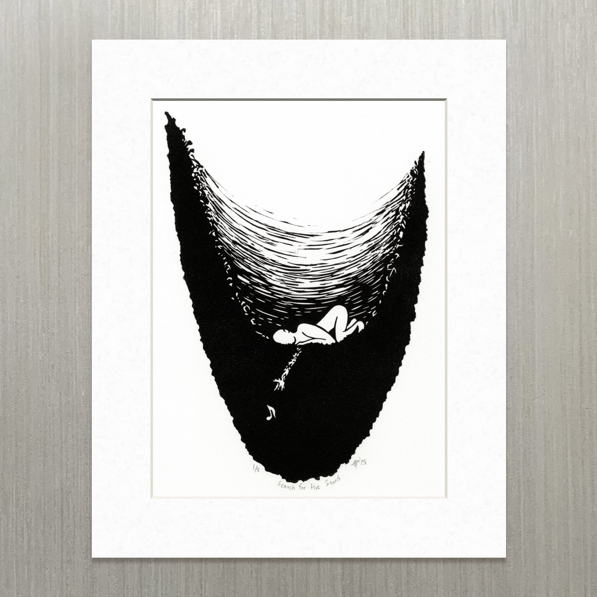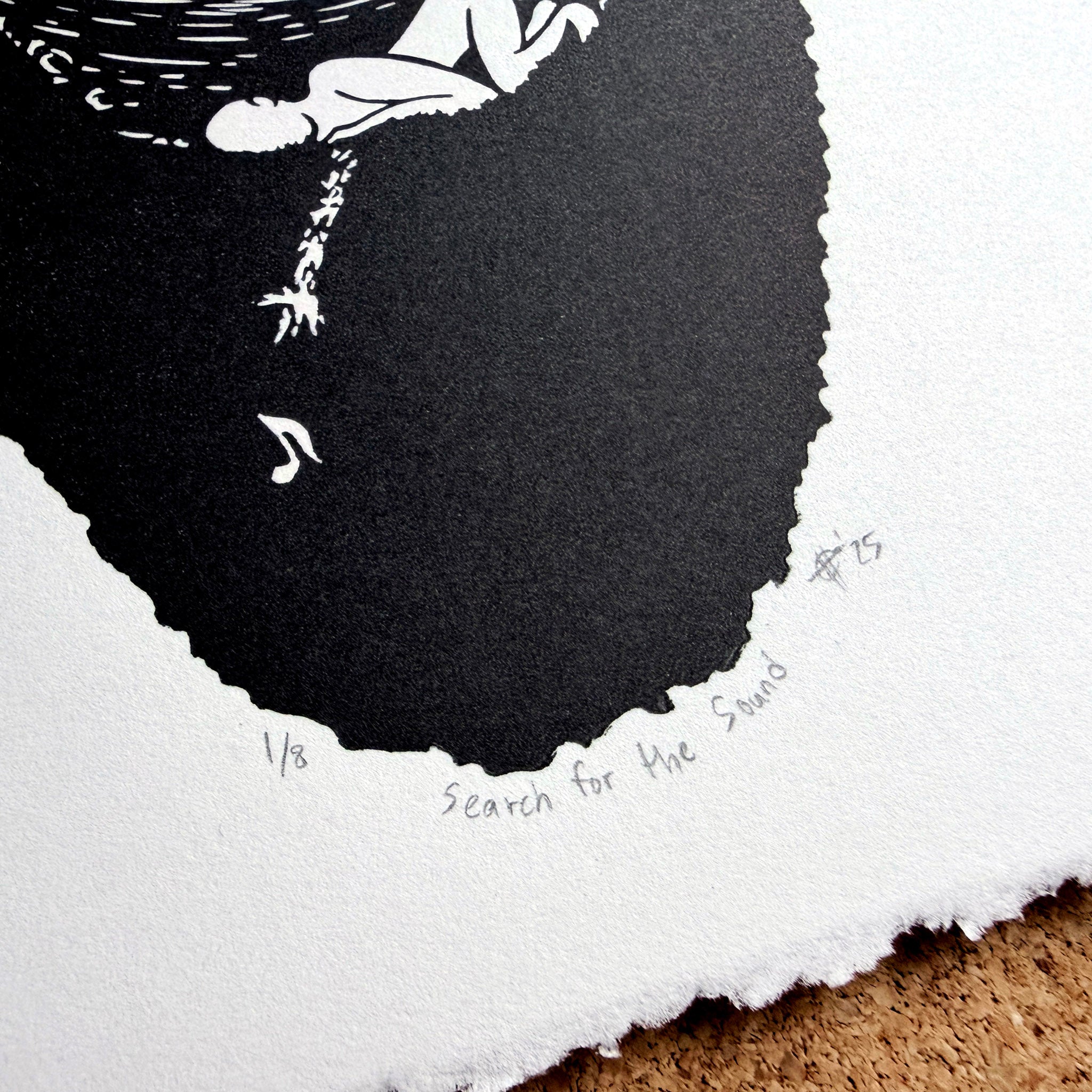 This artwork is hand-printed from a hand-carved block, signed and numbered from a limited edition of 8. Each print comes with a certificate of authenticity.