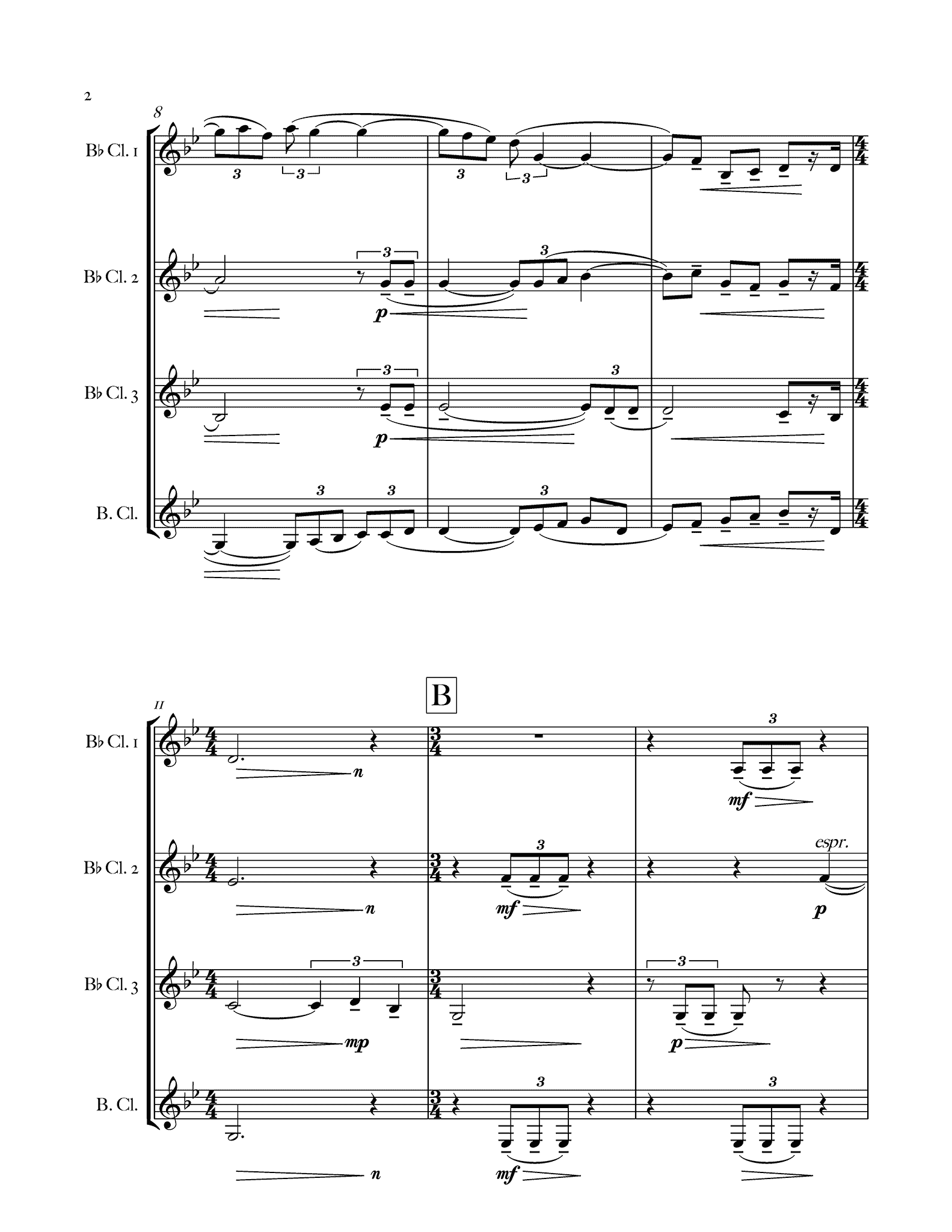 This work was also arranged by the composer for E-flat, 2 B-flats & bass (low-C), available here.