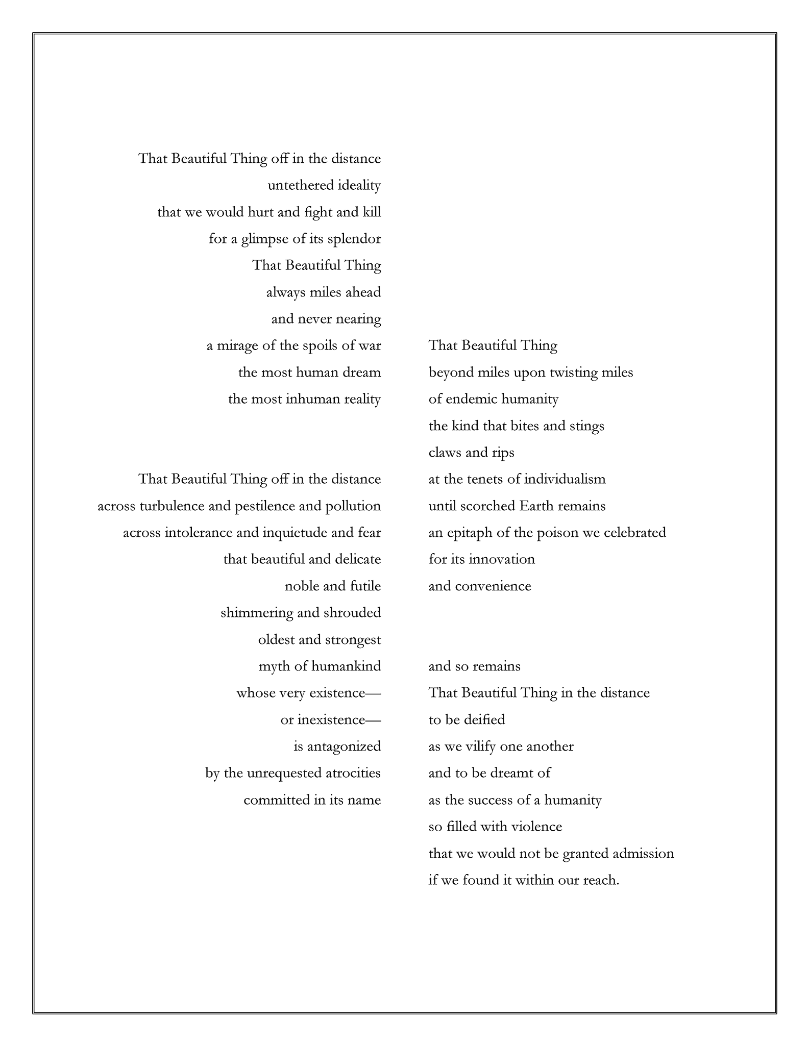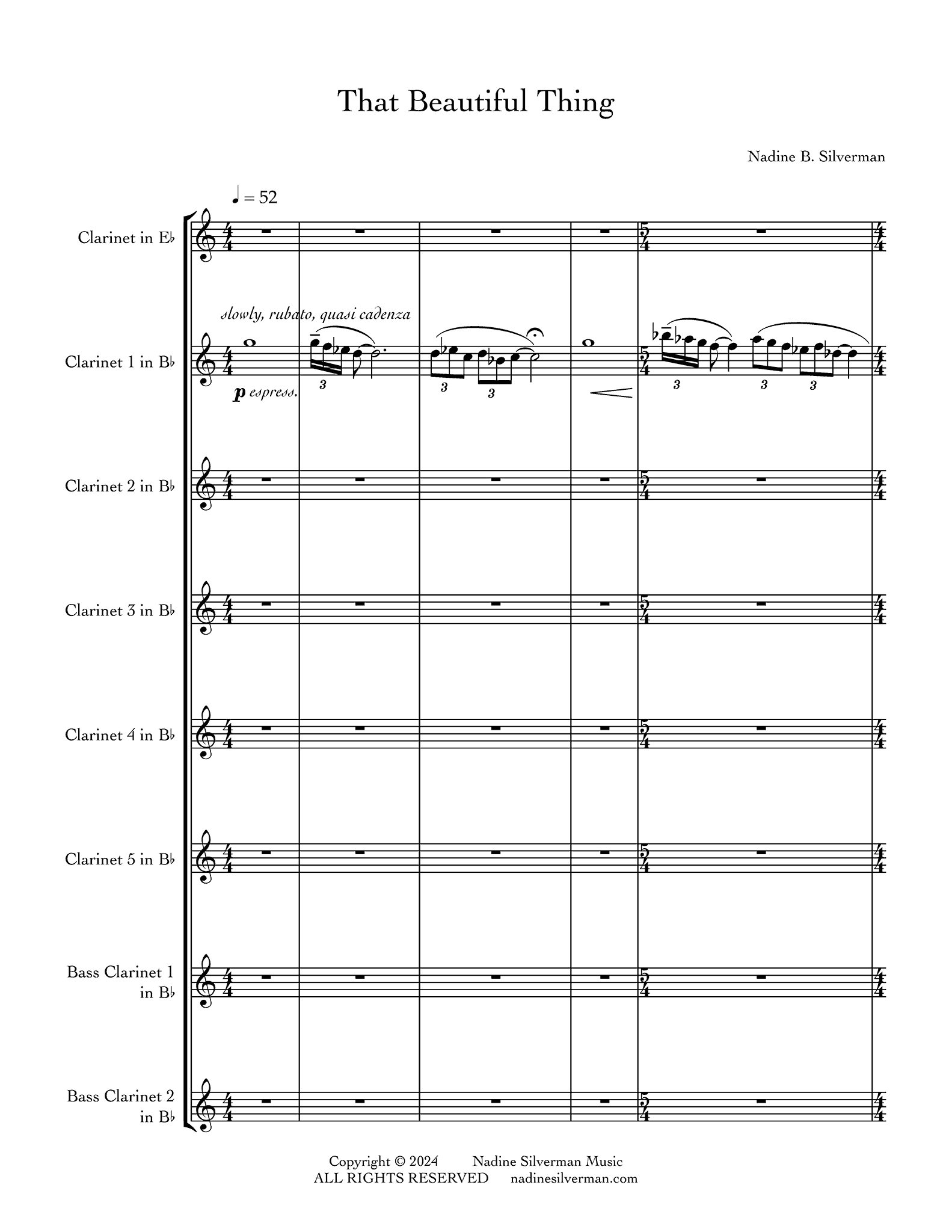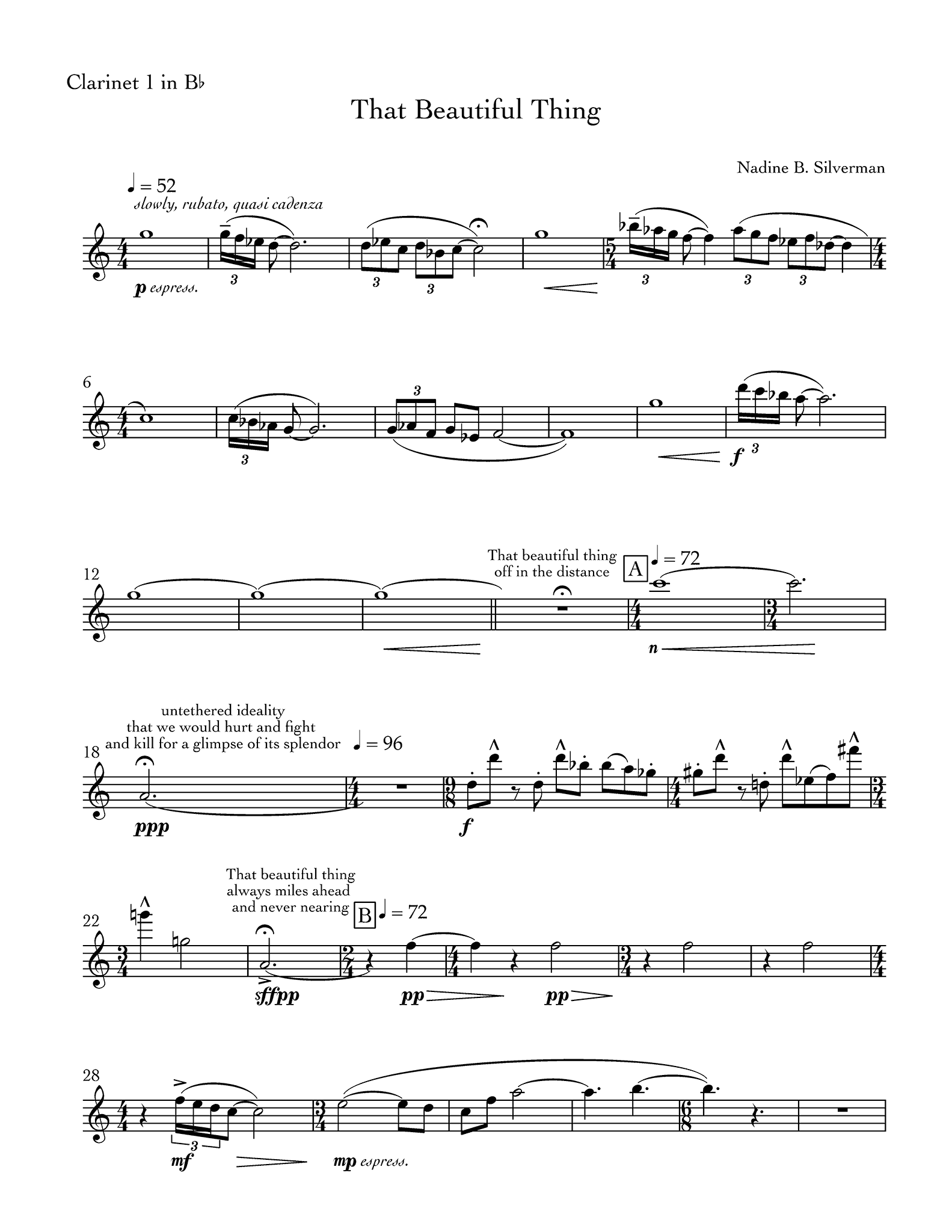 "The main motive represents the rhythmic prosody and relative pitch contour of the phrase “Beautiful Thing” and should be given particular weight and attention throughout.