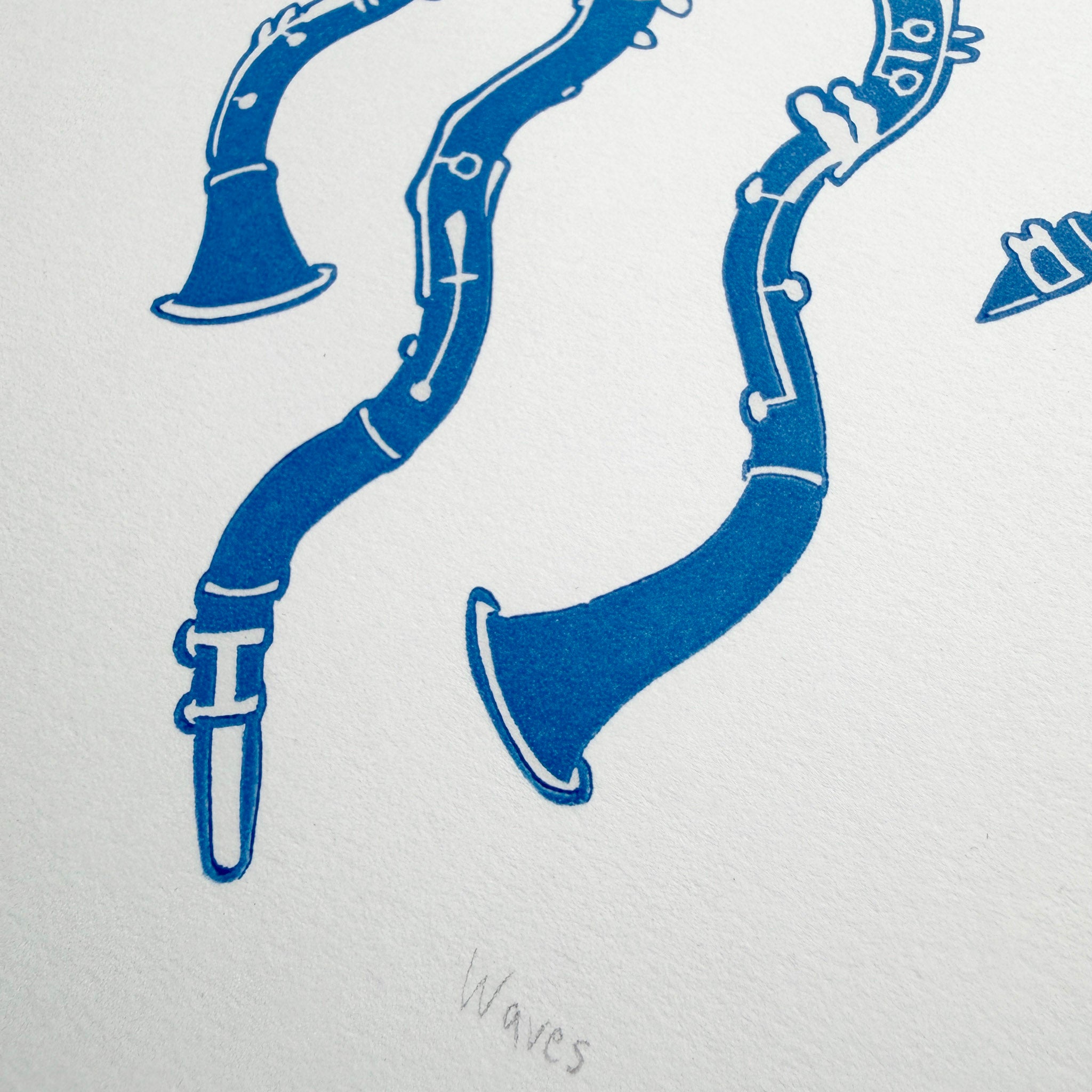 Much like live music performance, slight variations make each print unique from the next, resulting from the labor intensive hand-printing process.