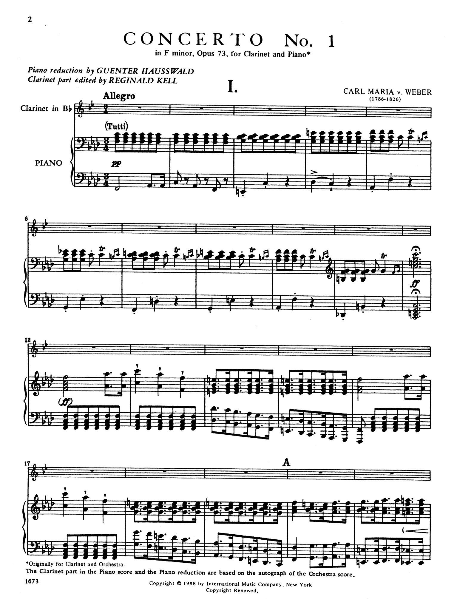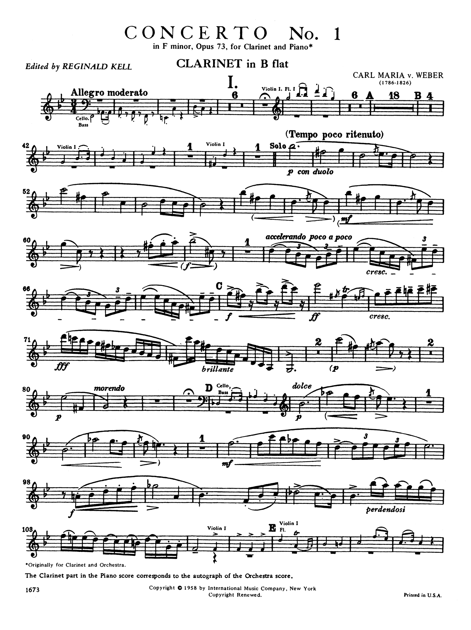 Clarinet Concerto No. 1 in F Minor, Op. 73, J. 114