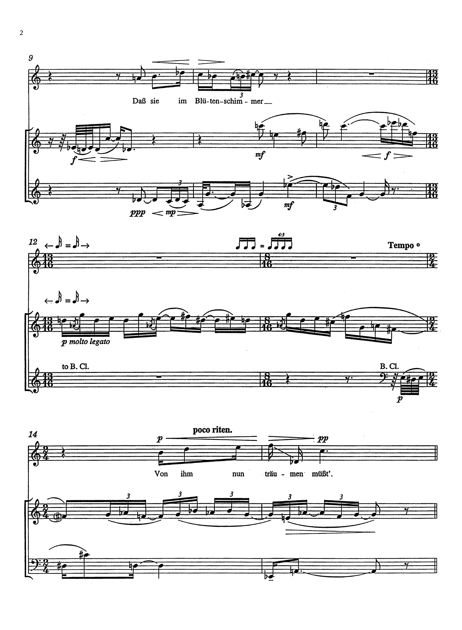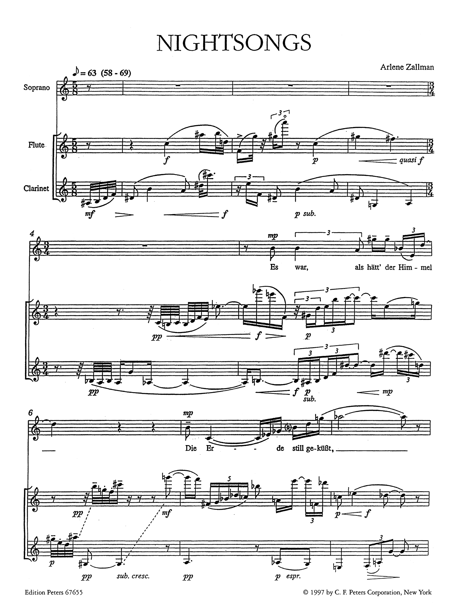 "The texts for Nightsongs are by Eichendorff, with a single fragment by the American poet Wendell Berry which originally inspired the piece. Although I didn't start out with the idea of setting the Eichendorff poems—that would have been too intimidating a prospect—at a certain point they seemed to, in a rather natural way, articulate (or "populate") the musical ideas triggered by the complex of allusions in the Berry verse, the first of a longer poem entitled The Country of Marriage."